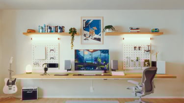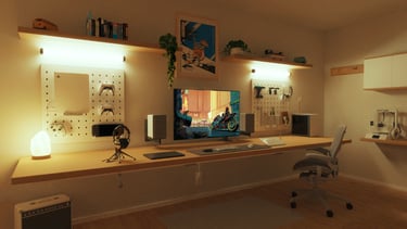 This project is a digital exploration of a streamlined, multi-functional workspace—engineered entirely in 3D as part of Dream Dimension Lab’s ongoing study into efficient desk environments. The render showcases a concept for a visually weightless setup that blends aesthetic clarity with functional modularity.